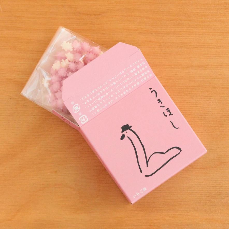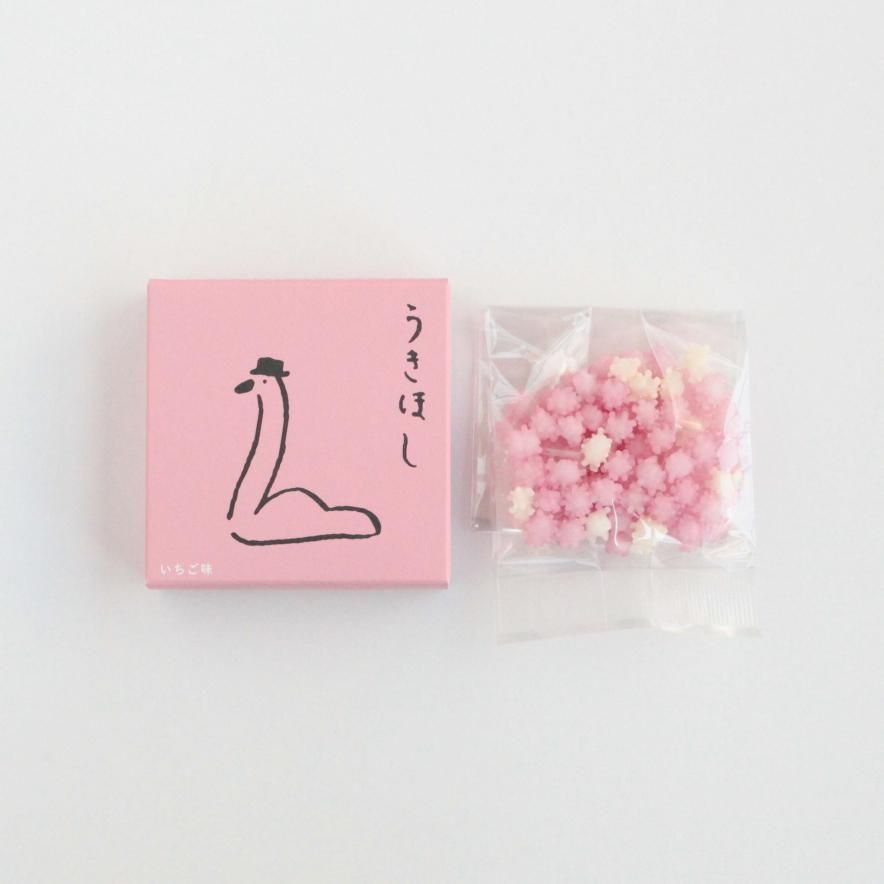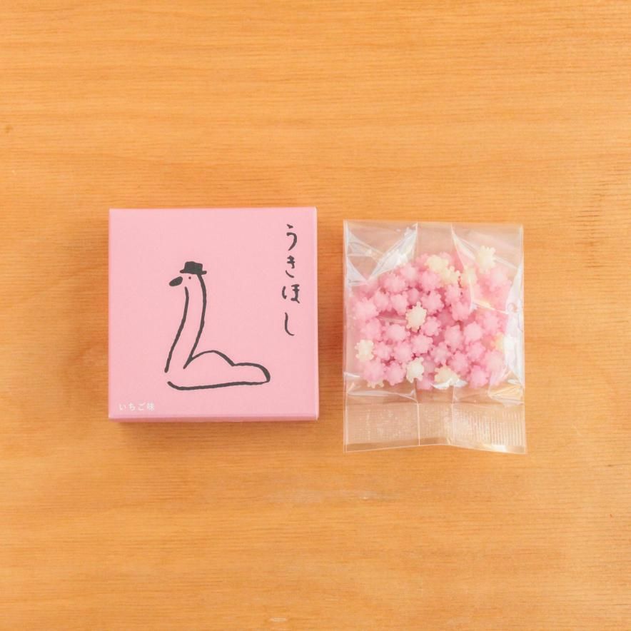 「浮き星(うきほし)」はもち米(あられ)に砂糖蜜をかけた甘いお菓子です。一見、コンペイトウのように見えますがちょっと違います。中身があられなので甘さ控えめで素朴な味です。